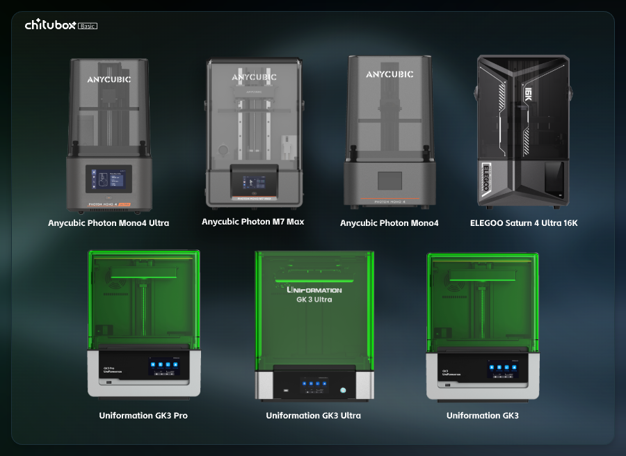 Support has been added for multiple models, including ELEGOO Saturn 4 Ultra 16K, UniFormation GK3, UniFormation GK3 Pro, UniFormation GK3 Ultra, Anycubic Photon Mono4, Anycubic Photon Mono4 Ultra, and Anycubic Photon Mono M7 Max. This further broadens the software's application range, meeting the needs of different users.